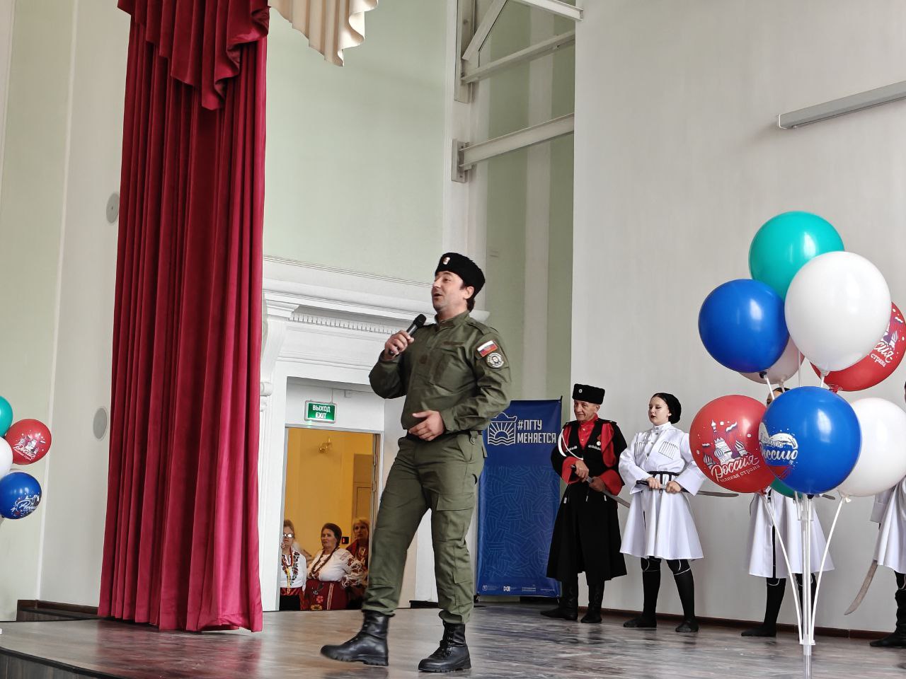 Вместе, на одной сцене, в этот день стояли люди из разных эпох и разных поколений: студенты ПГТУ, школьники, ветераны, казаки. Мы все такие разные, но все вместе мы едины!