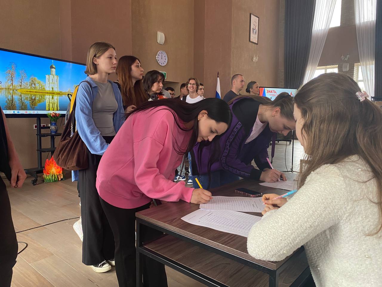 В мероприятии приняли участие студенты разных направлений подготовки, преподаватели. Атмосфера была по-настоящему торжественной и вдохновляющей: перед началом диктанта прозвучали слова благодарности ветеранам, воспоминания о великом подвиге, прозвучали стихи и песни военных лет.